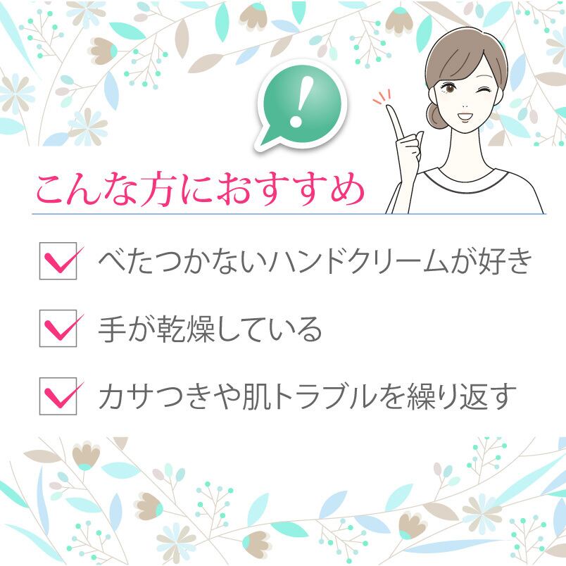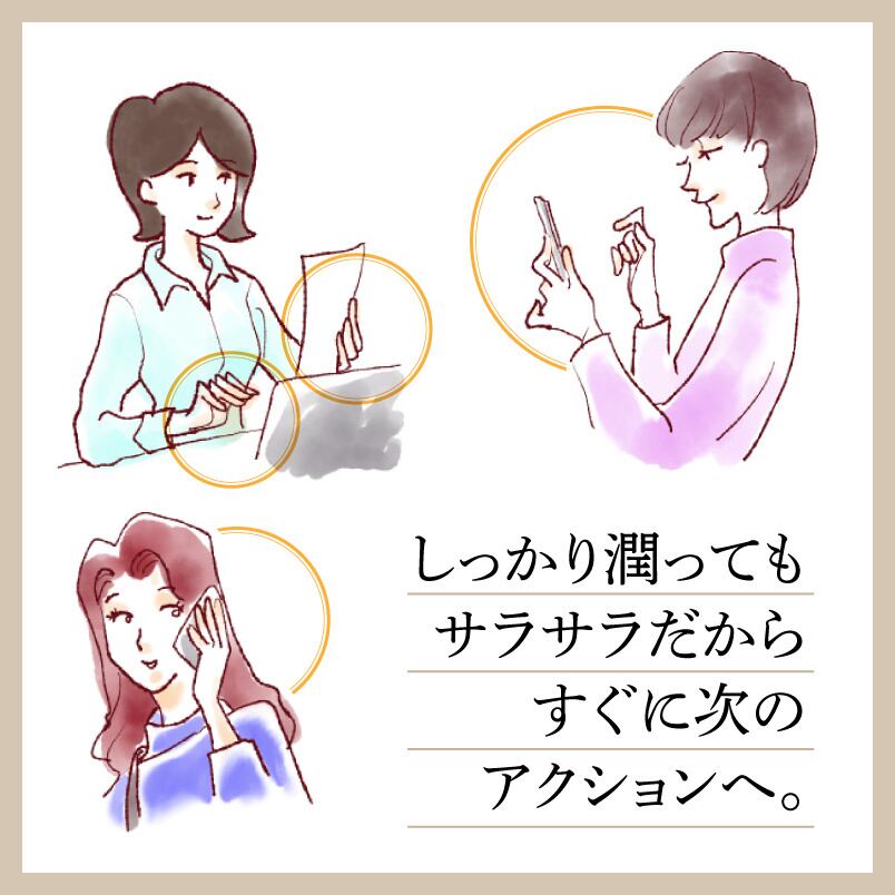 なめらかでみずみずしい手に保湿力のある植物エキスを配合。しっとりさらさらした使用感が特徴です。