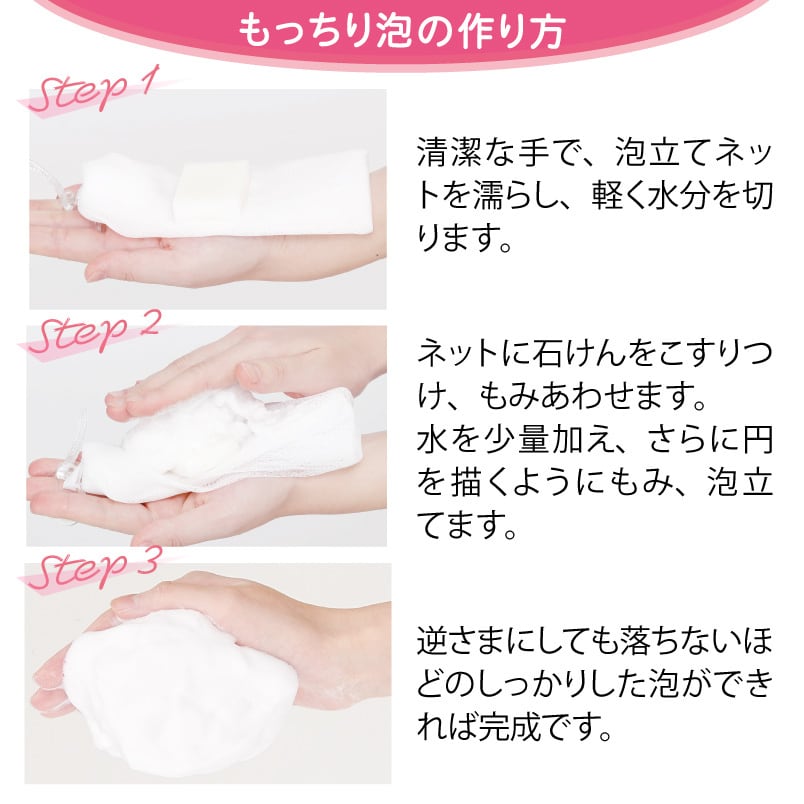 ②ネットの表面にピュアモイスチャーソープをこするように泡立てます。