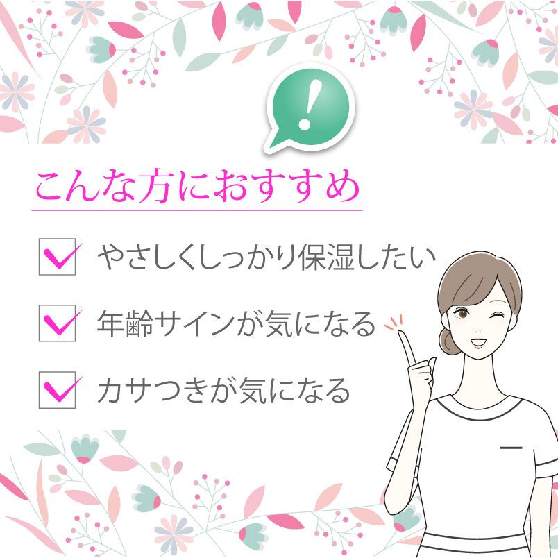 高い保湿力を有するポリ-γ-グルタミン酸Naをはじめ、 アルガンオイルやダイズサポニンなど、天然保湿成分を配合。