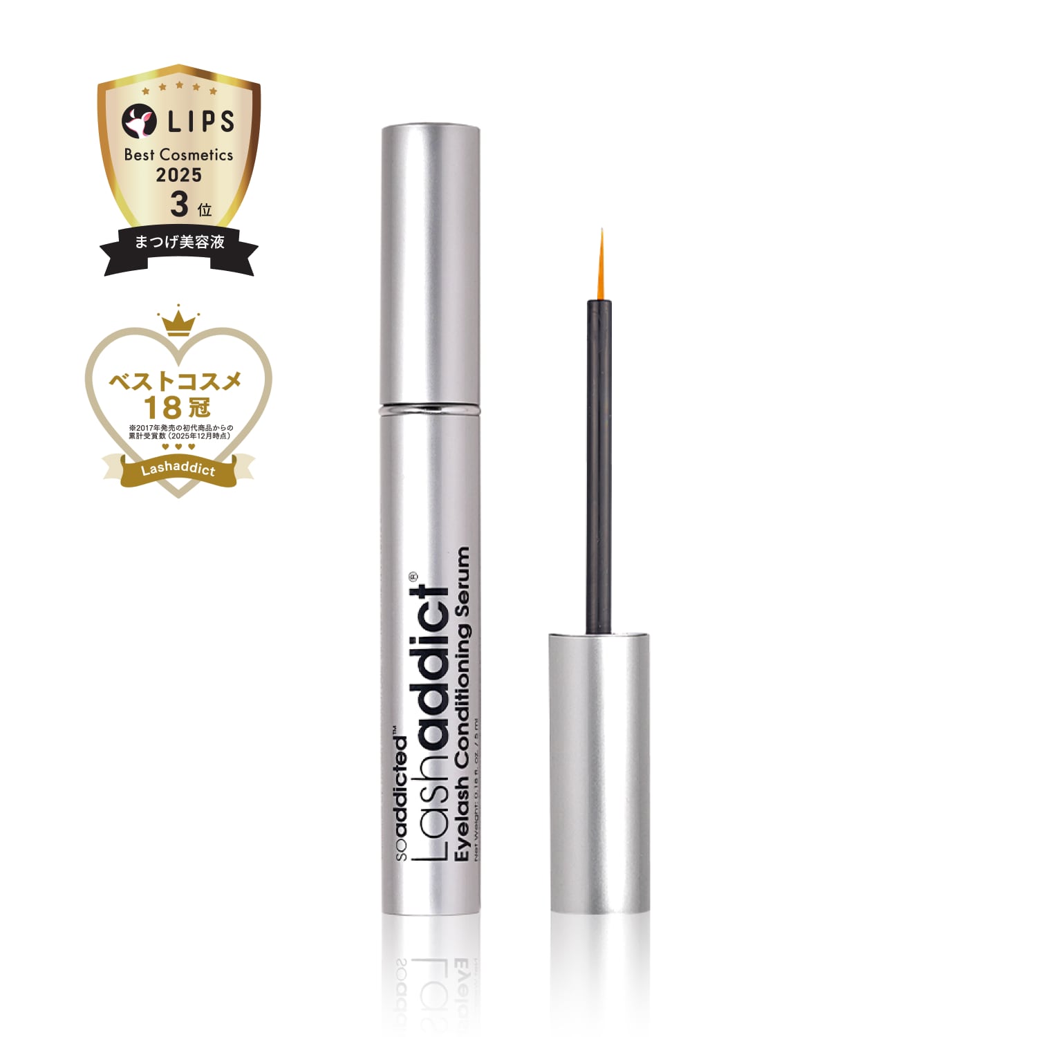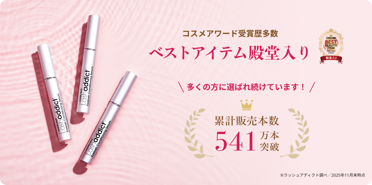 🔹ラッシュアディクトの配合成分は、すべて国内化粧品に関する法律に基づいて配合しておりますが、目元の皮膚は薄く非常にデリケートです。一部のお客様の中には製品に含まれる成分が合わず、目の周辺に炎症などが生じる可能性がございます。ご使用中、そのような症状が生じた場合は、ただちにご使用をお控えください。