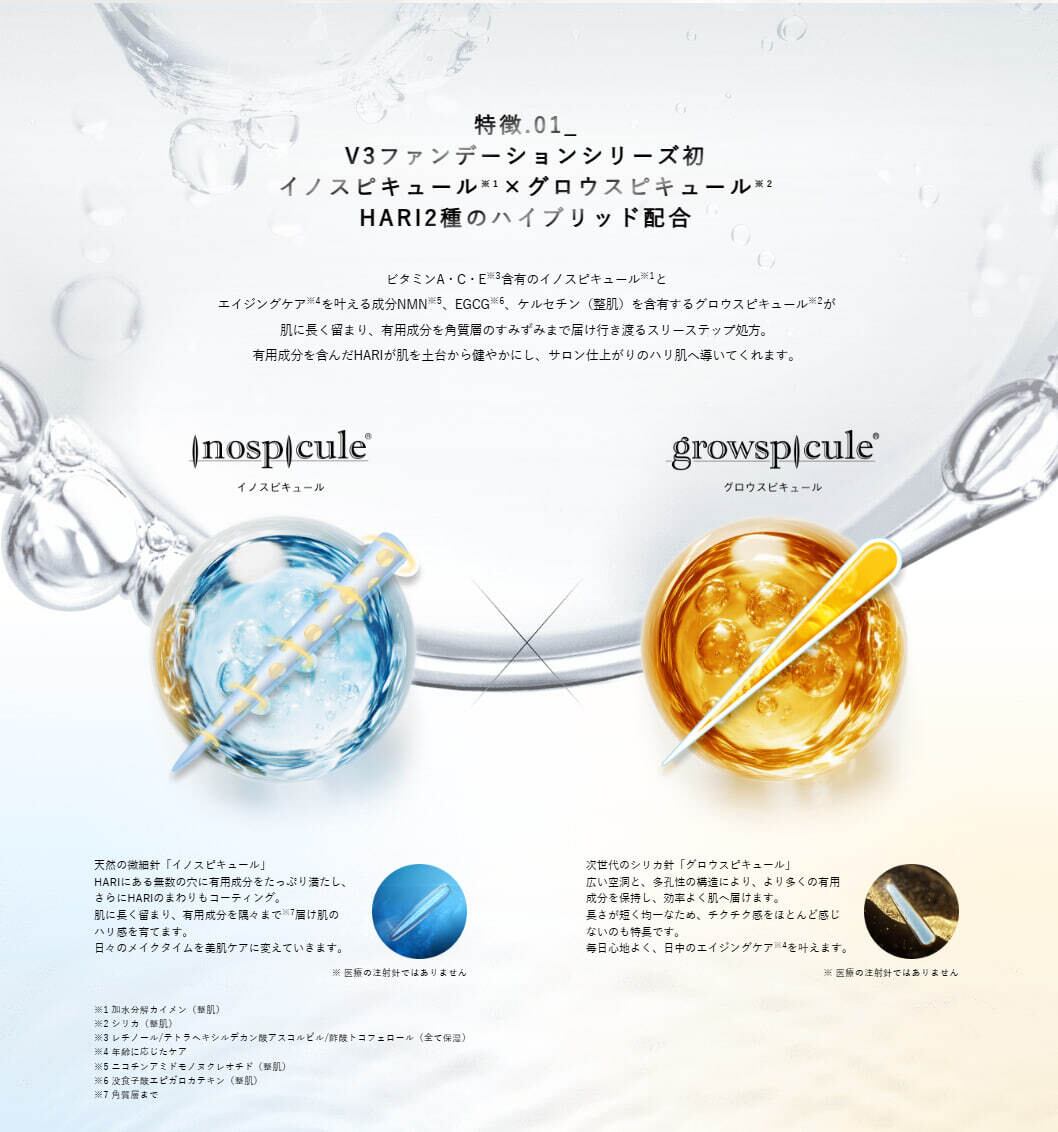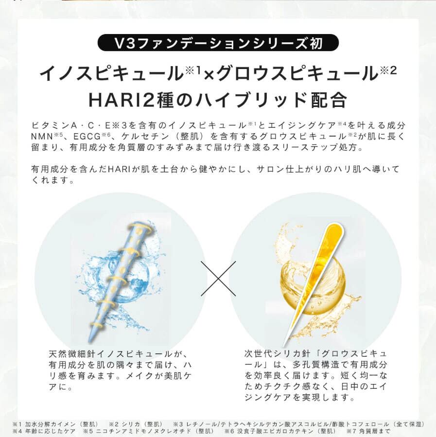V3ファンデーションシリーズ初、2種類のHARIのハイブリッド配合が実現。