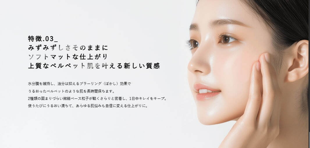 内側から発光するようなうるおいに思わず触れたくなる、新しい可能性を秘めた、端正なベルベット肌へ導きます。