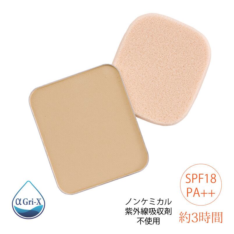 化粧下地を塗った後、パフに粉をとり、軽く押さえるように顔全体にお塗りください。