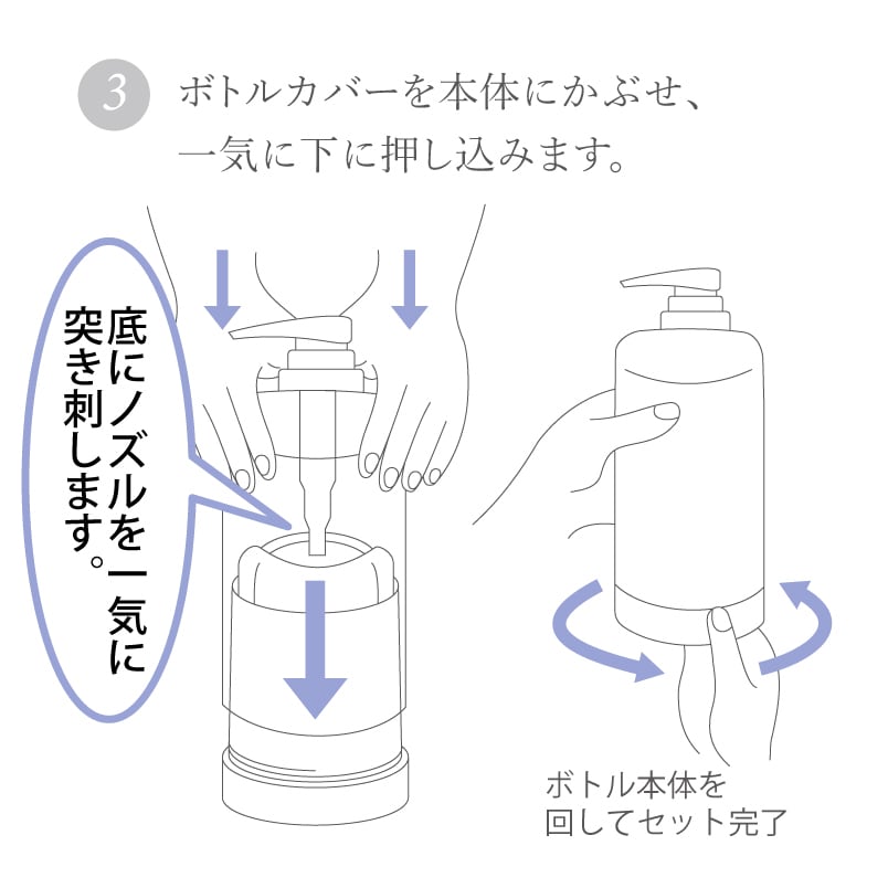 ☆ご使用途中でポンプ及び、ボトルカバーを取り外さないでください。水が入ったり、中身が最後まで出にくくなることがあります。