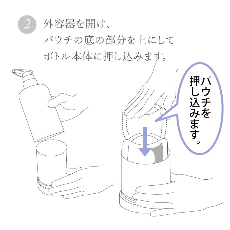 ☆パウチを交換する際はボトル本体を外し、内部のパウチを回しながらゆっくり抜くようにして交換してください。