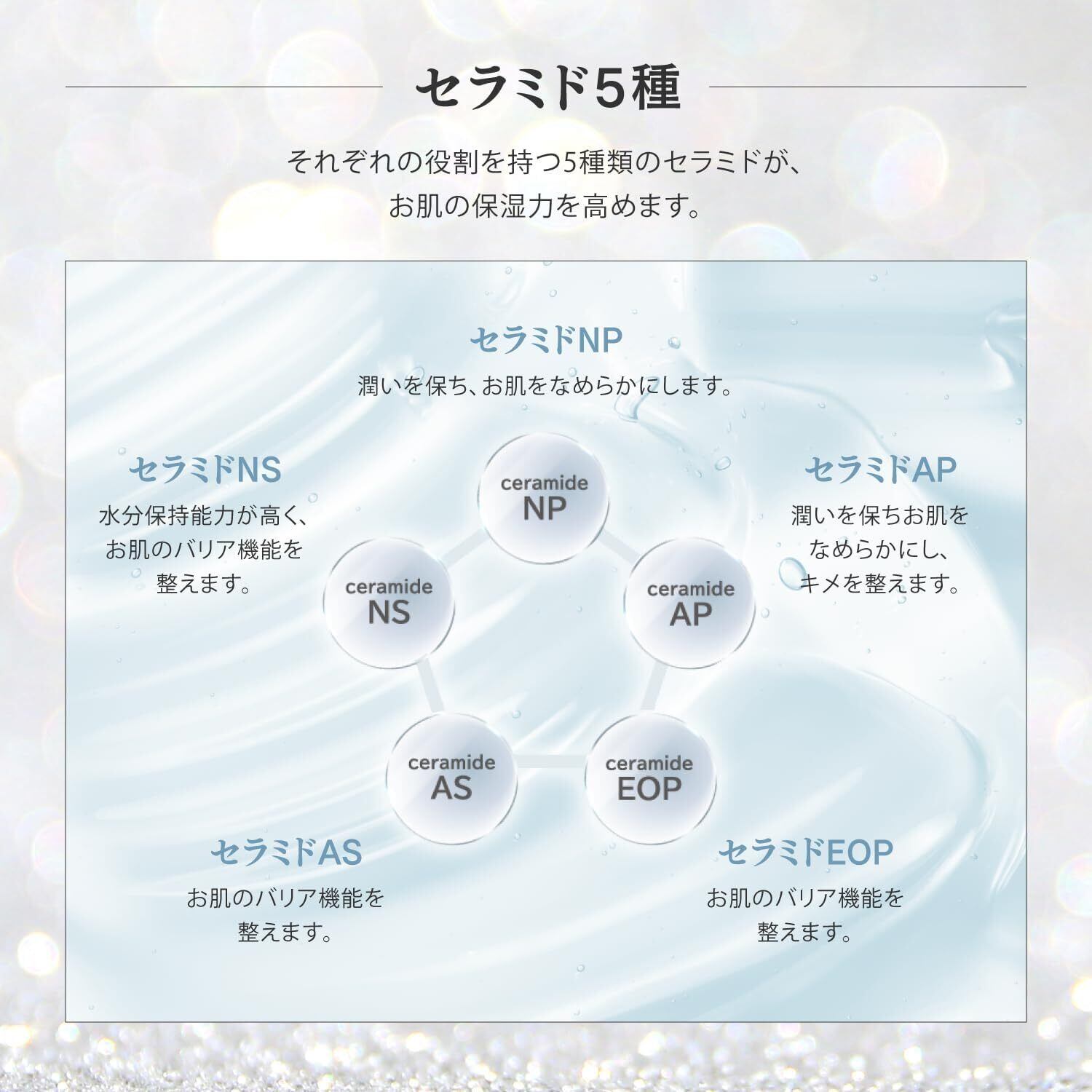 それぞれの役割を持つ5種類のセラミドが、お肌の保湿力を高めます。