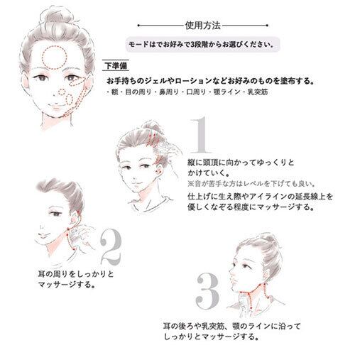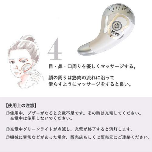 手のひらサイズの小型マシンで、いつでもどこでも使用できて、電気の刺激と高周波により、お顔に刺激を与え、リフトアップ!!