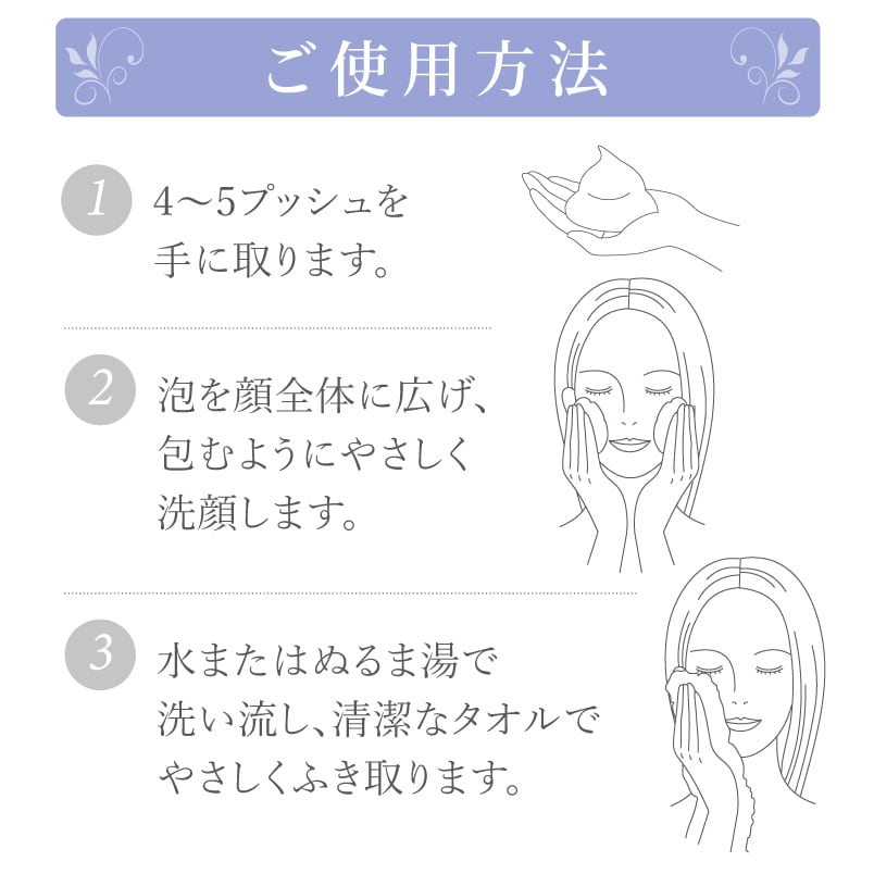 ②泡を顔全体に広げ、包むようにやさしく洗顔します。